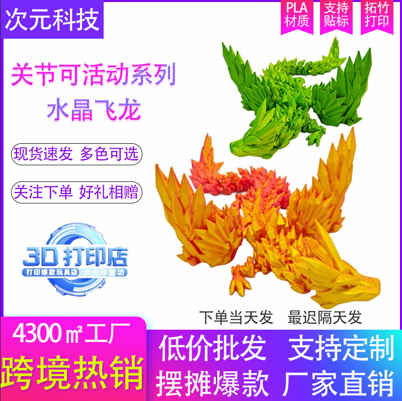 3D Printed Crystal Flying Dragon with Wings and Movable Joints, Cross-Border Stall-Selling Children's Toy