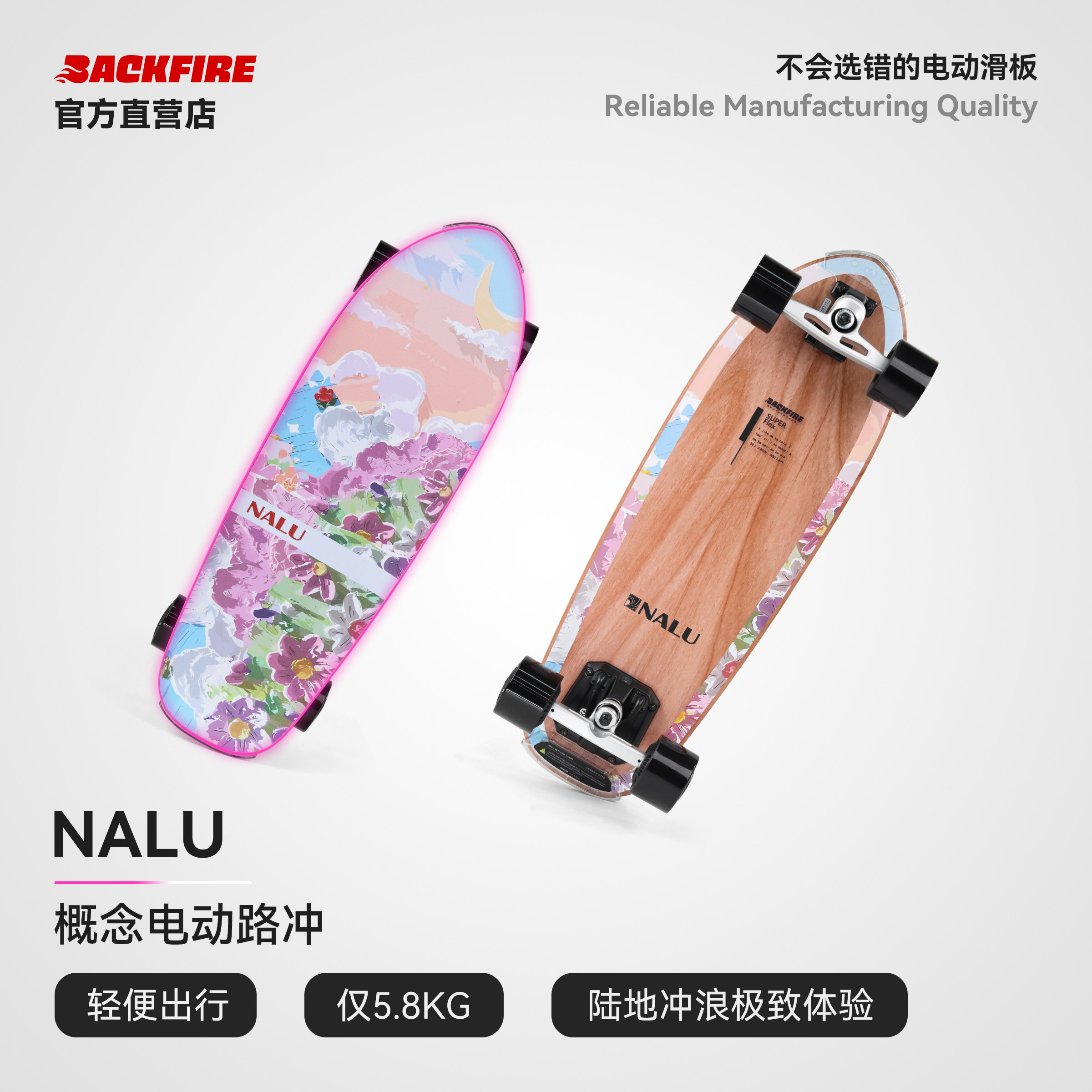 Backfire Nalu Electric Skateboard Portable Land Surfing Professional Unisex Remote Control Portable Campus Mini Conan