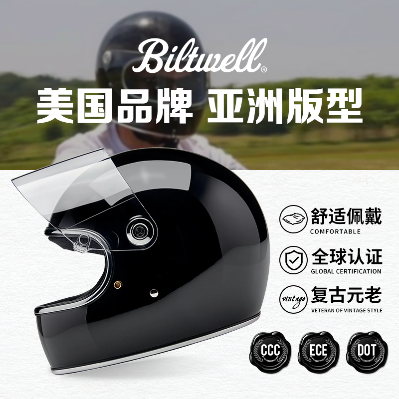 American Curwell Motorcycle Retro Helmet Motorcycle Cycling Winter Cruise Four-Season Full-Face Helmet 3C Certified for Men and Women