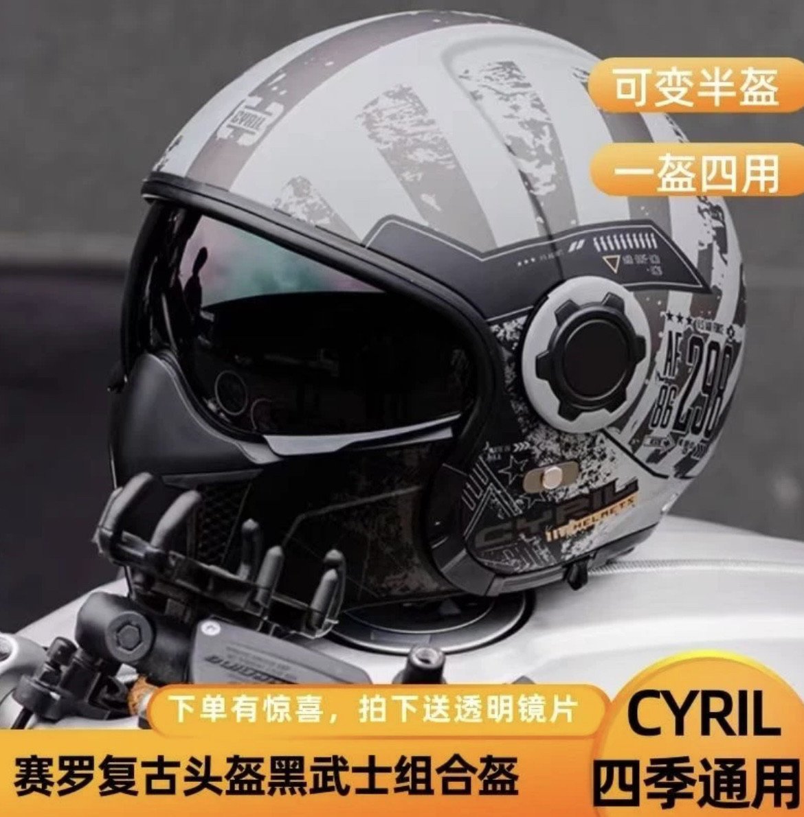 Cyril Retro Helmet Black Warrior Full/Half Helmet Combination Motorcycle Unisex All-Season Universal Motorcycle Harley