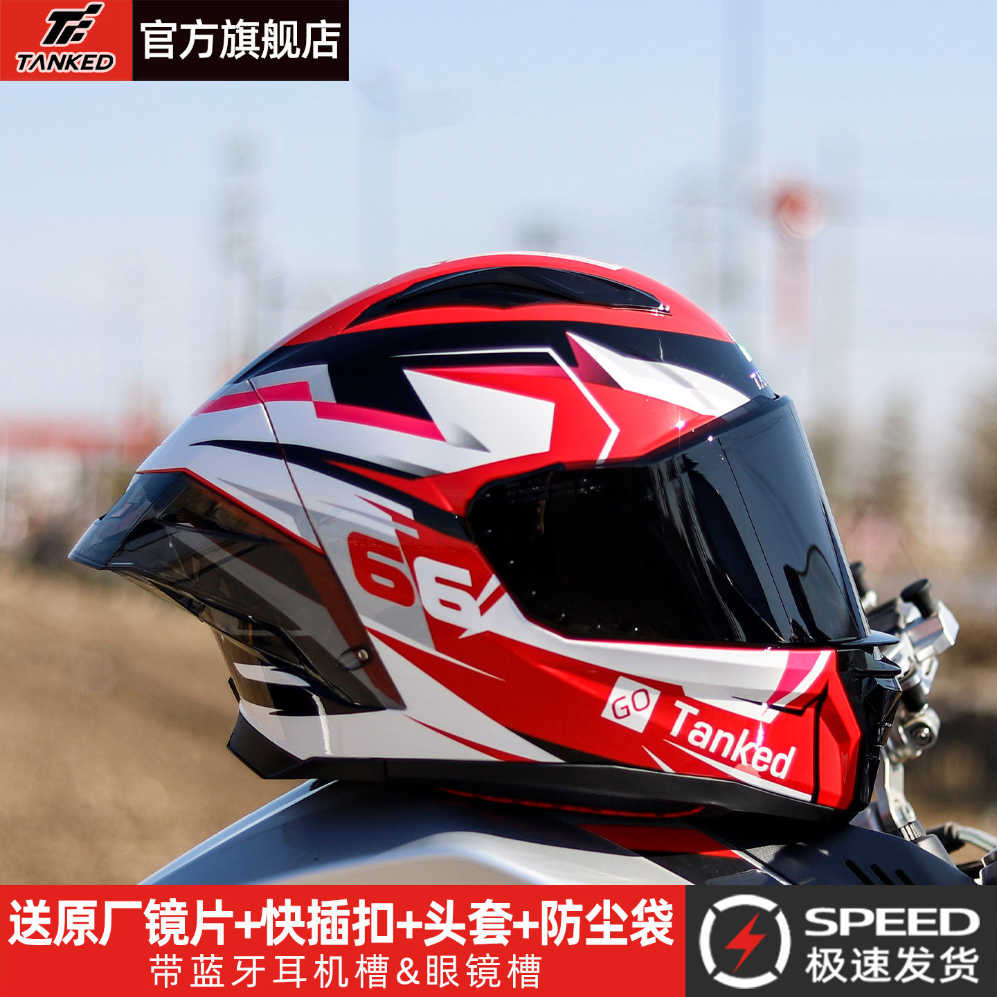 Tanked Helmet for Men, Full-Face Motorcycle Helmet for Women, Racing-Style, with Bluetooth Slot, Suitable for All Seasons, Breakthrough Model