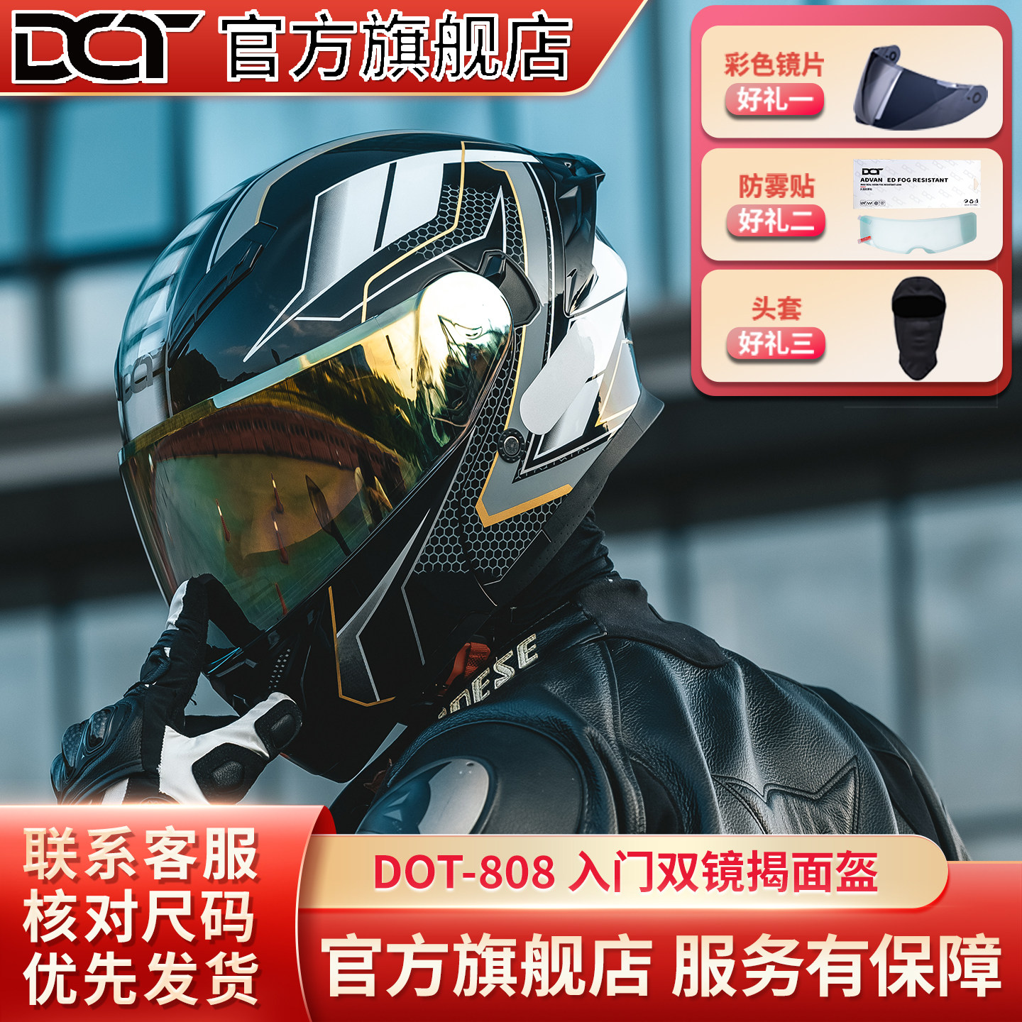 Dot808 Full-Face Motorcycle Helmet with Dual Visors for Men and Women, Full Coverage, All-Season, Electric Vehicle Riding, Anti-Fog, Winter Sunshade