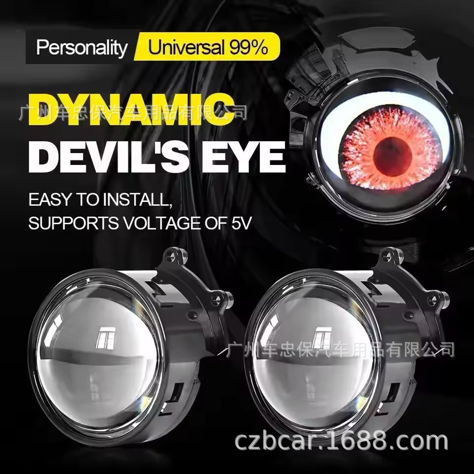 Cross-Border Popular Devil's Eye Lamp Led Dynamic Car Lens Headlight Atmosphere Light Modified Universal Car Motorcycle