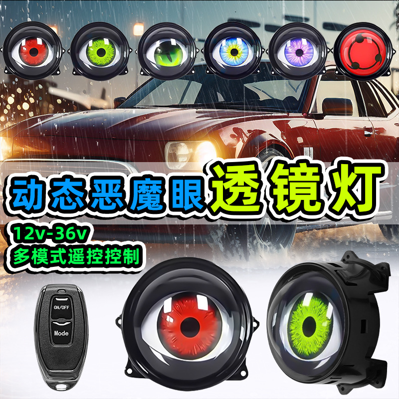 Cross-border Explosions Devil's Eye Light led Dynamic Car Lens Headlight Atmosphere Light Modified General Motors Motorcycle