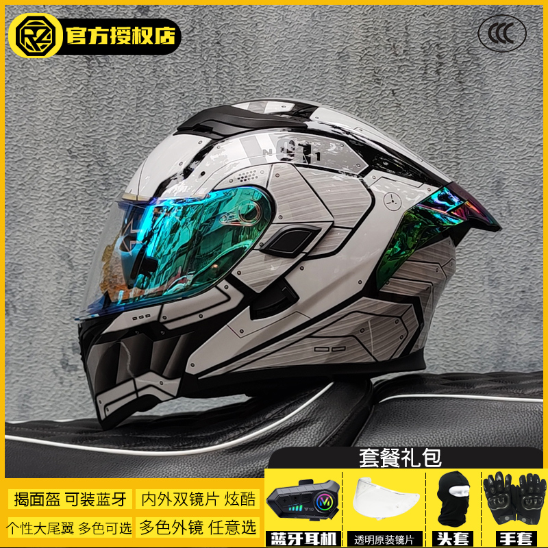 Orz Motorcycle Helmet for Men and Women, Bluetooth Open-Face Helmet, Motorcycle Touring Full-Face Helmet with Large Spoiler, Safety Helmet with 3C Certification