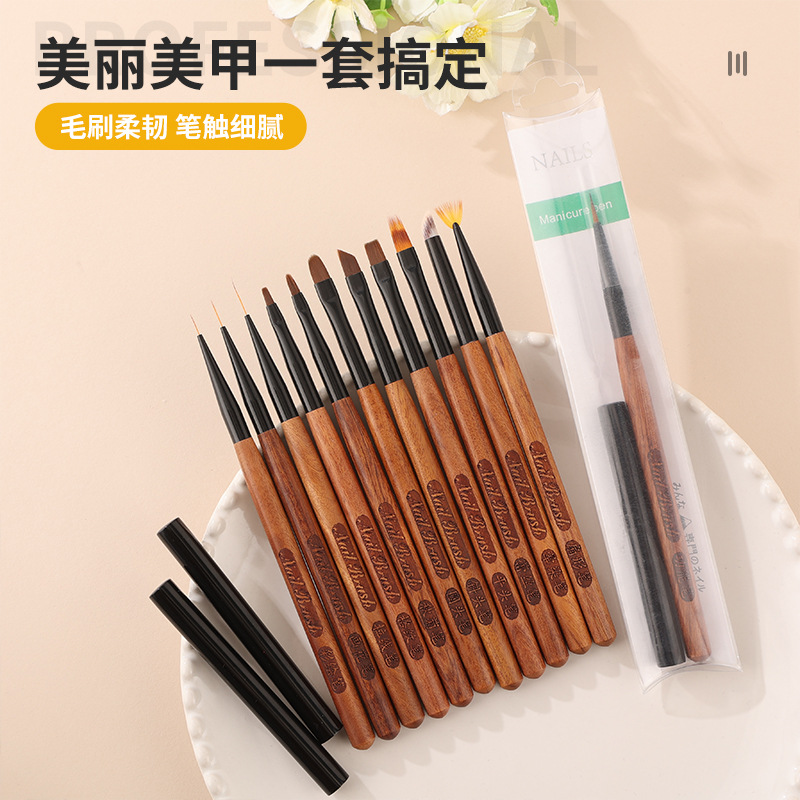 Sandalwood nail brush 12 nail tools nail shop pull line drawing pen phototherapy brush can be wholesale