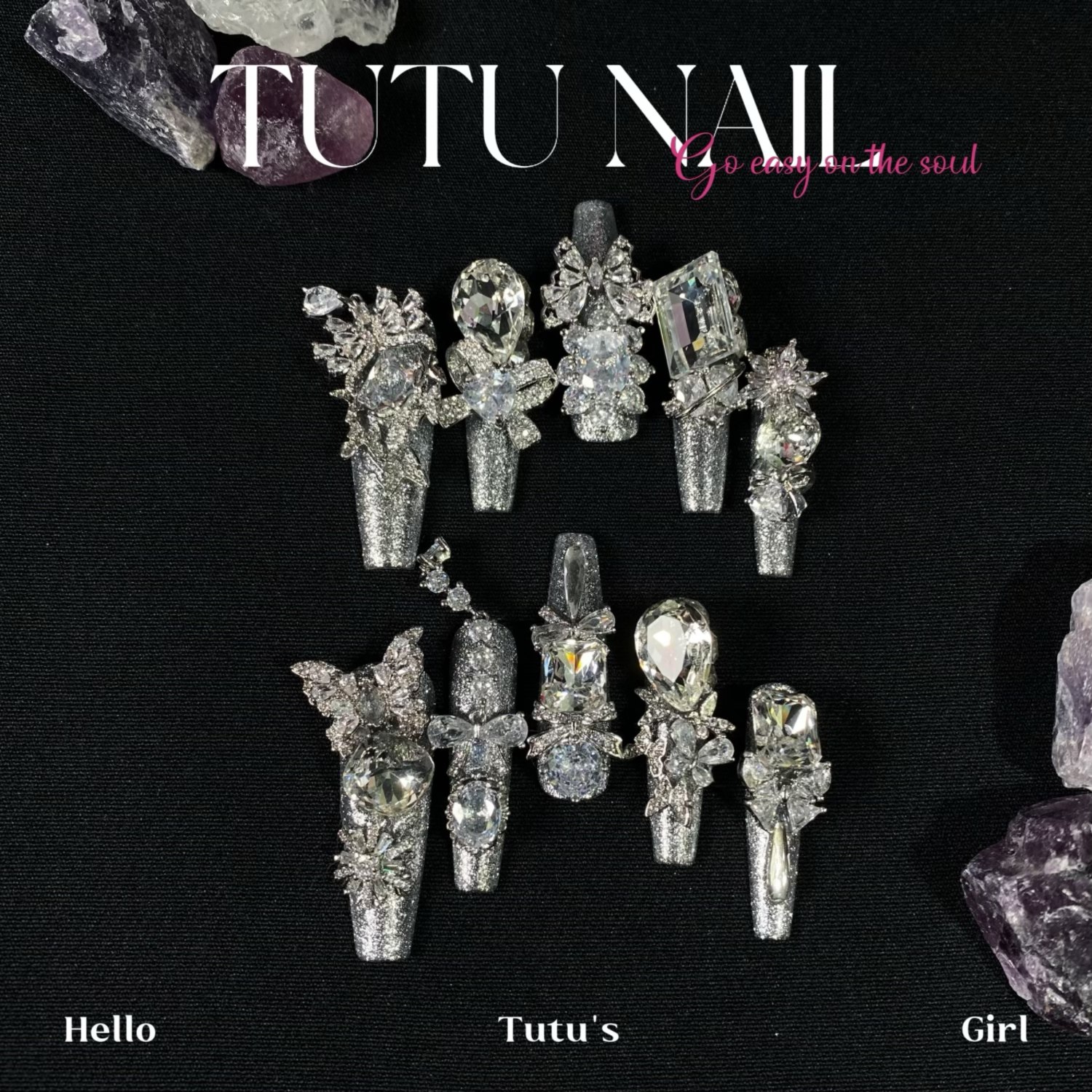 【White Love Song】Tutu Nail Handmade Wearable Nails Heavy Craft Pure Desire Lace Winter Snowflake Holy White New Year