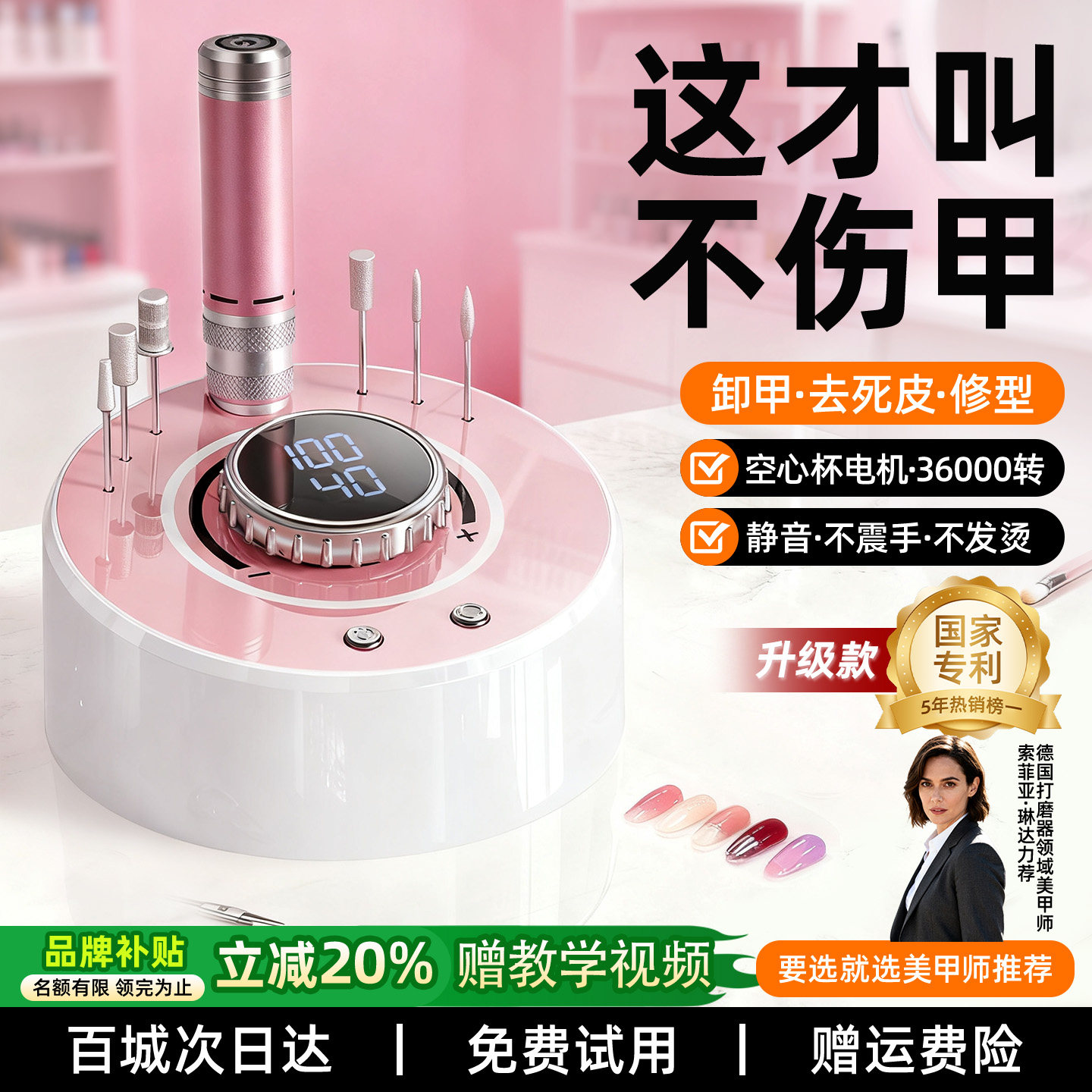 New Model of Nail Drill with Hollow Cup, Specially Designed for Nail Salons, Small Electric Nail Polisher for Removing and Trimming Nails, Dead Skin Tool