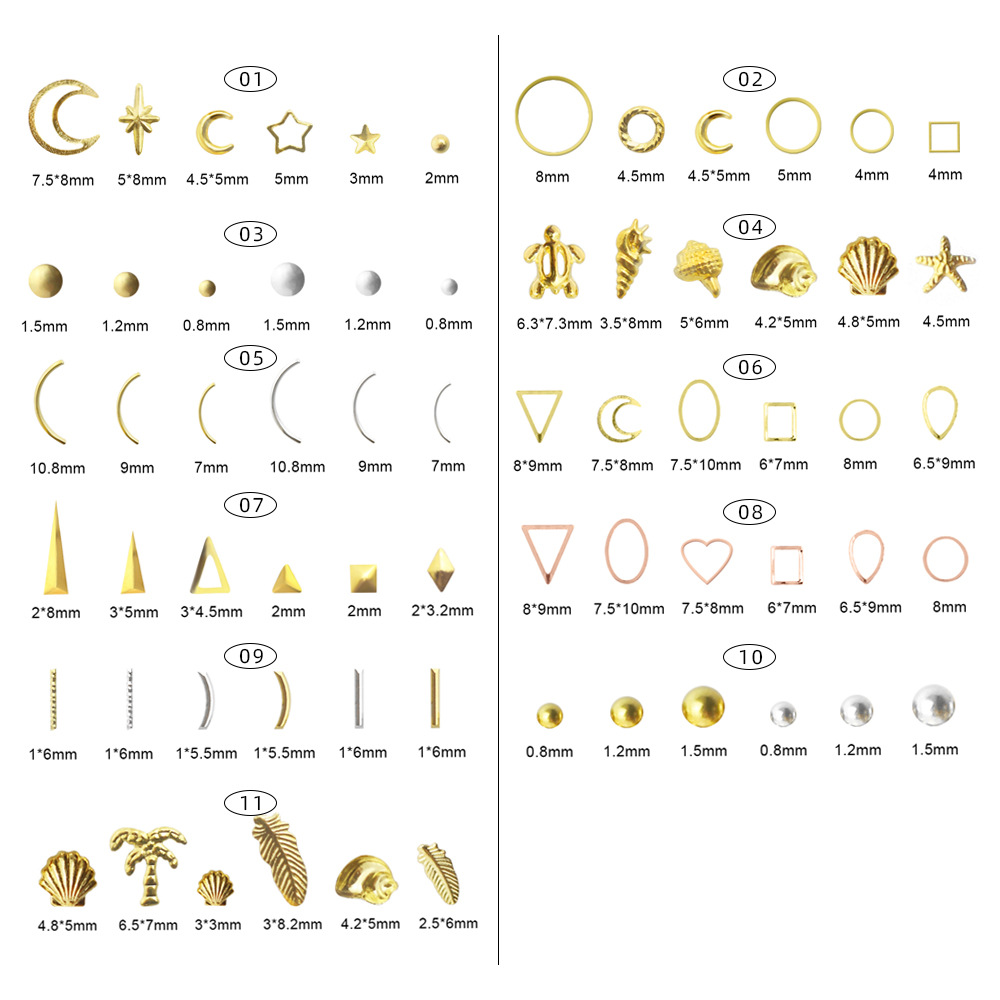 Factory Direct Sales Nail Art Rivet Jewelry Special-Shaped Nails Gold and Silver Mixed Alloy Accessories Exquisite Shiny Light