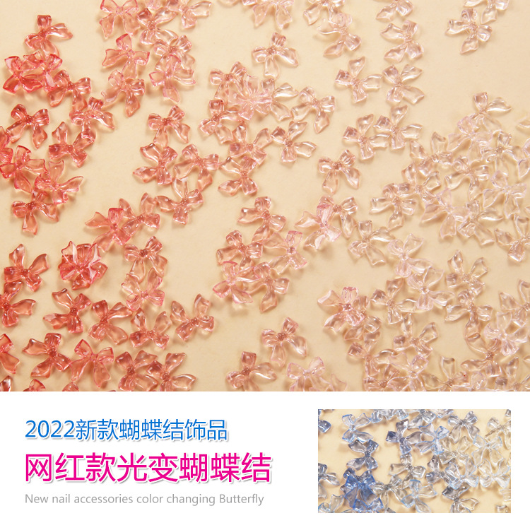 Internet celebrity New Style Nail light-sensitive color-changing bow ice-transparent fresh diamond decoration light-changing ribbon transparent nail decorations