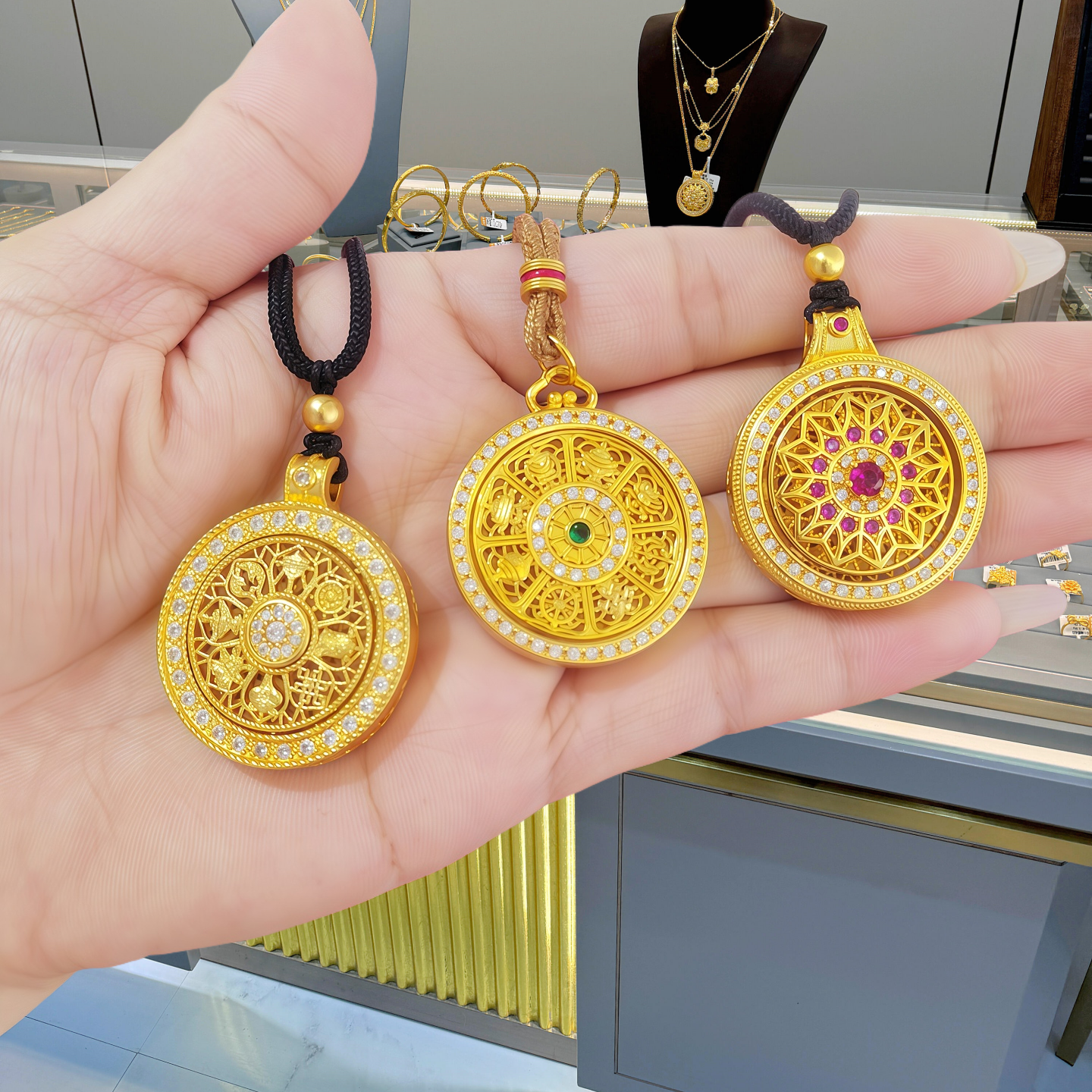 Gold-Plated Silver Eight-Treasure Compass Pendant for Women, Hollow Diamond-Encrusted Rotatable Sunflower Round Pendant, Collarbone Sweater Necklace