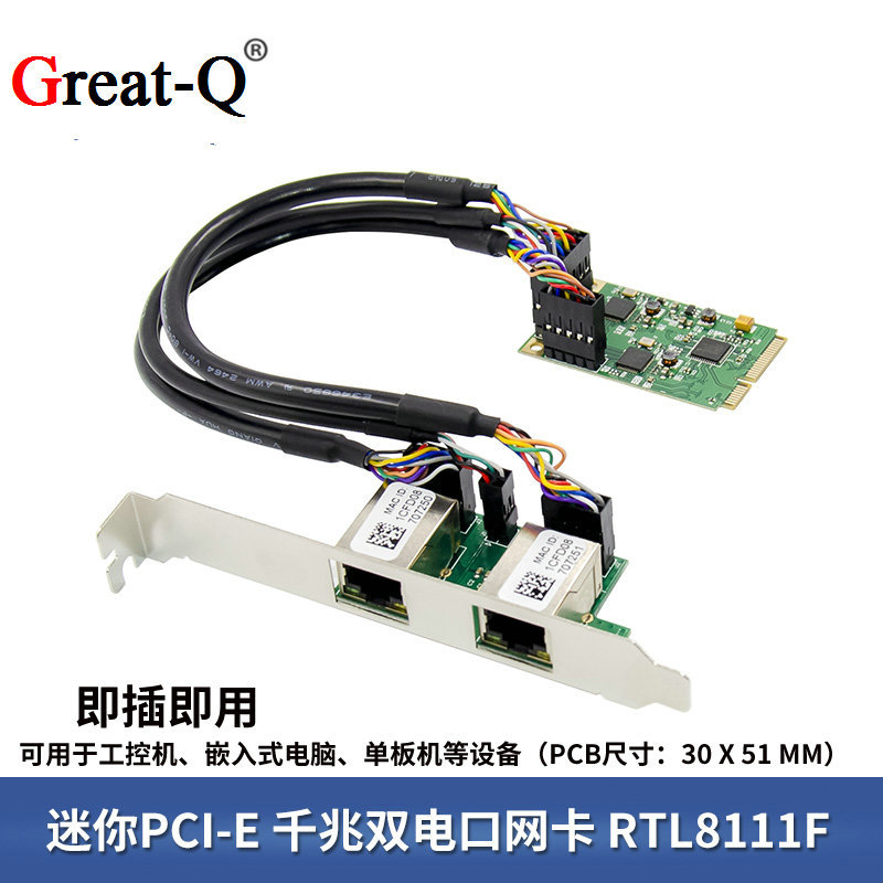 Mini PCIe Gigabit Dual-Port Network Card RTL8111F ASM1182 Industrial Ethernet Device Adapter Card
