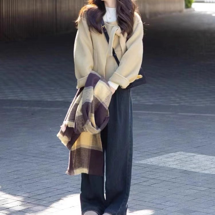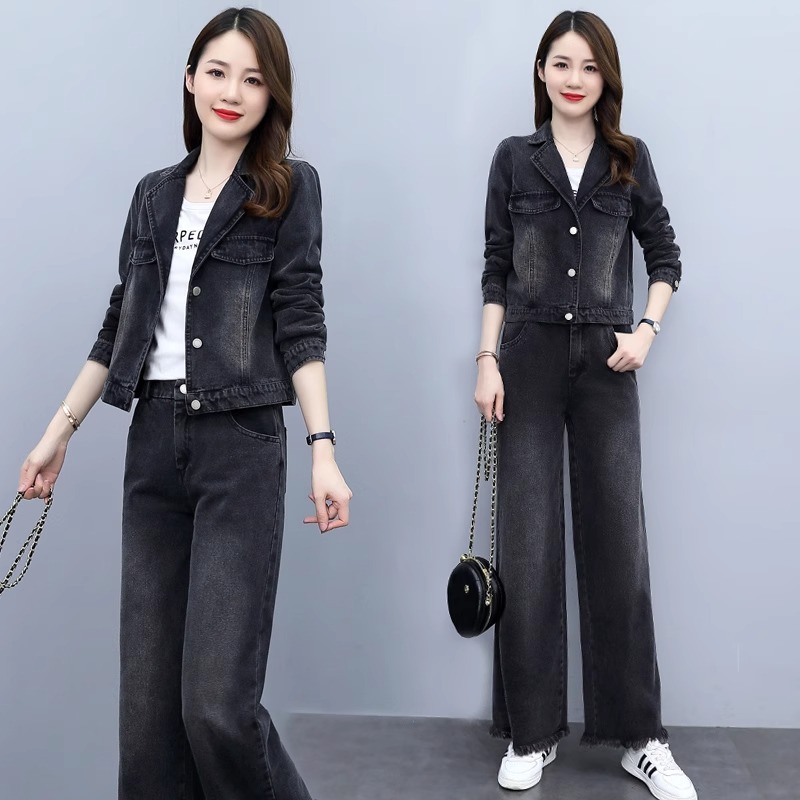 Jeans Wide Leg Pants suit Women's Spring and Autumn 2024 New Fashion Casual Western Style Age-reducing Autumn Dress with a Complete Set