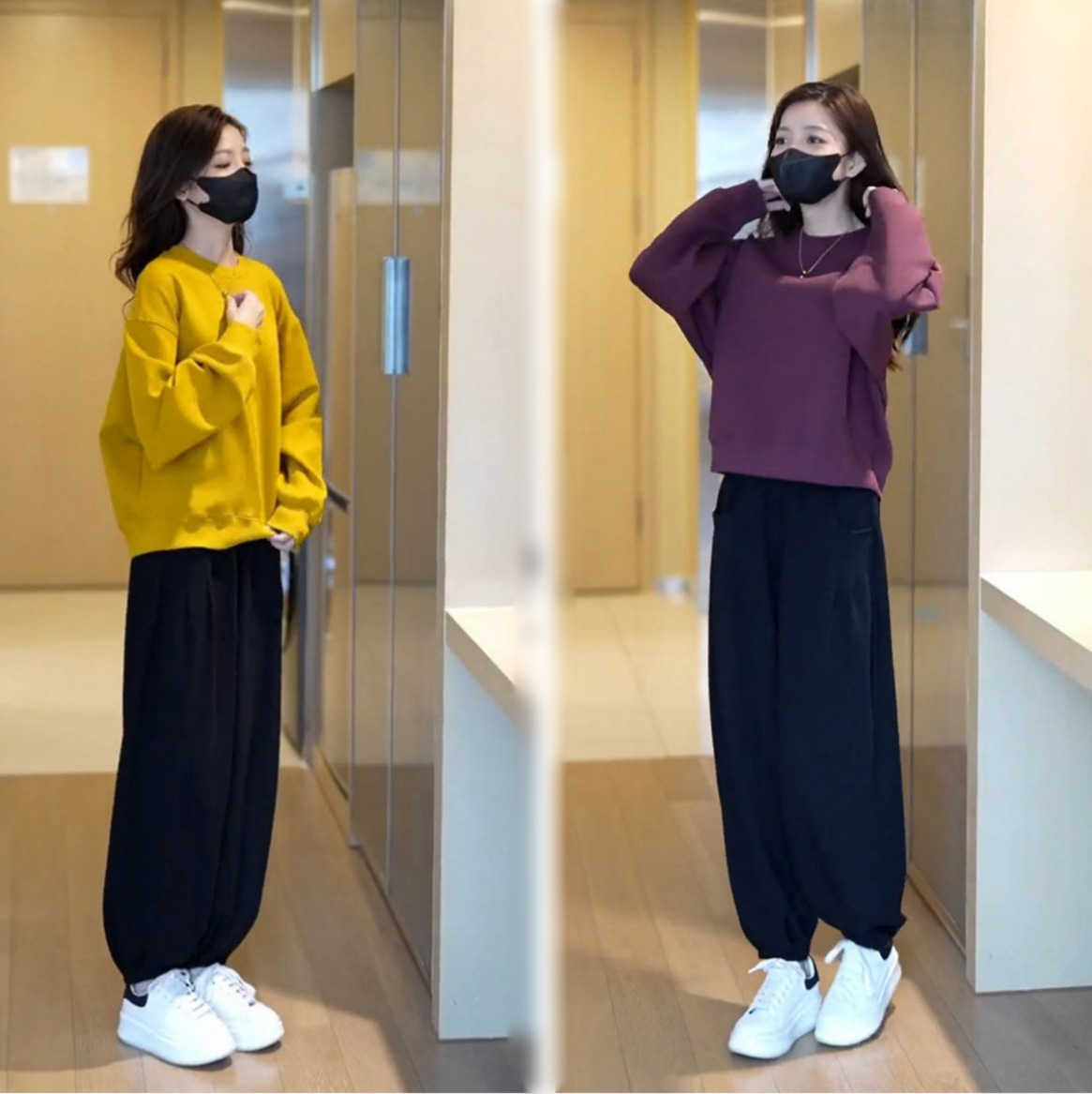 Pear-shaped figure autumn and winter wear exquisite loose harem pants two-piece suit this year's popular sweater suit a set of women