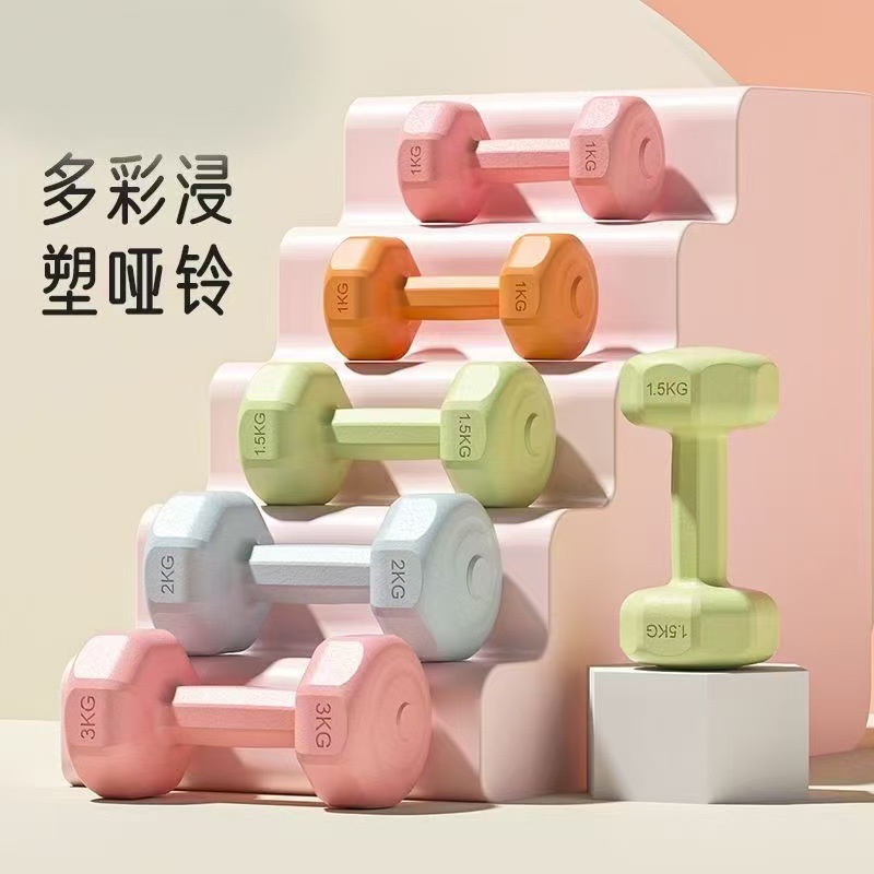 Dumbbell Dumbbell Hexagonal Dipped Plastic Home Aerobics Colorful Women's Glossy Fitness Equipment Home Yoga Outdoor