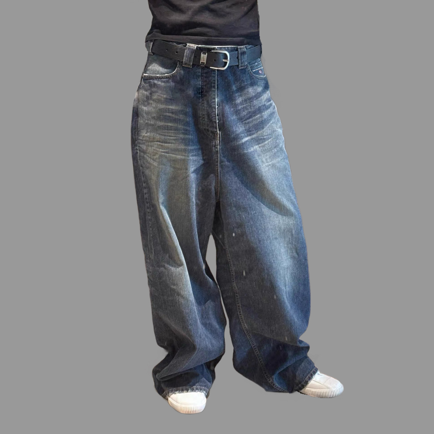 Bmc Unity Sports Retro Red Label Double-Ring Letter Embroidery Dark Blue Jeans Baggy Pants