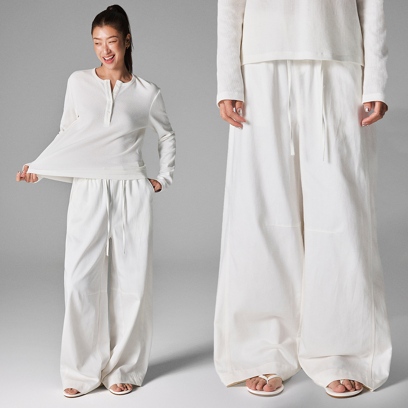 Achock Sports Casual White Drawstring Wide-Leg Pants 2025 Autumn and Winter New Drapey Floor-Length Pants