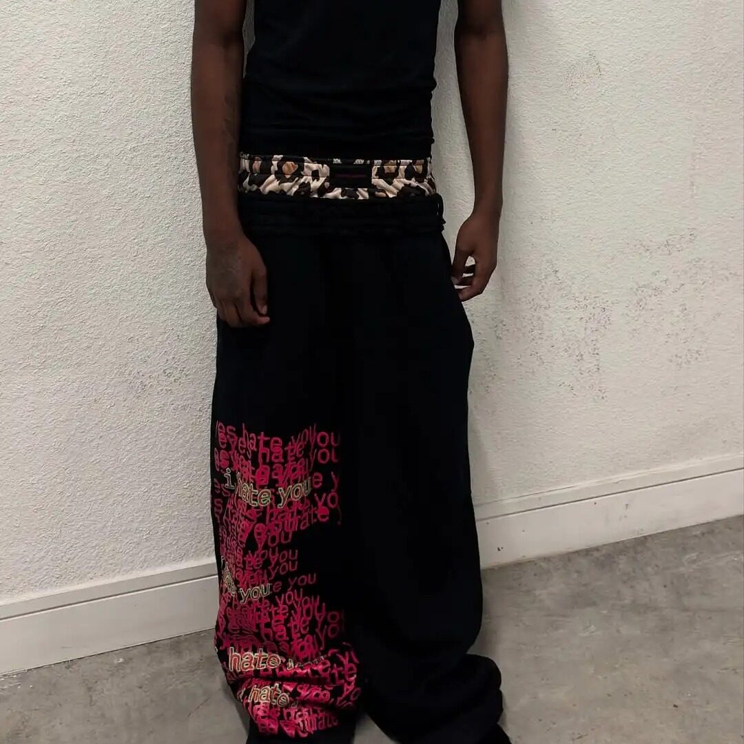 Double waist design letter pattern sports pants
