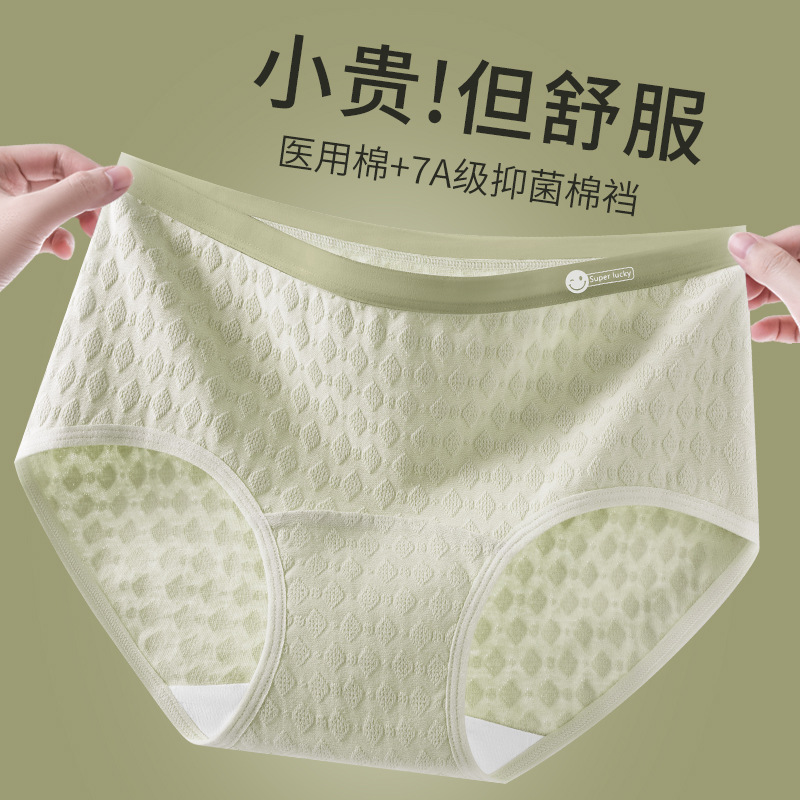 Medical Grade Class a Cotton ~ 2024 New 7A Antibacterial Extended Pure Cotton Crotch Breathable Jacquard Seamless Mid-Waist Women's Underwear