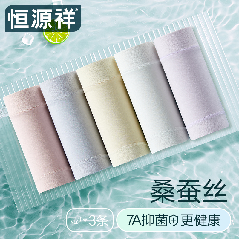 Hengyuanxiang Women's Summer Thin Underwear 10A Antibacterial Mulberry Silk Crotch Breathable Non-Binding Seamless Mid-Waist Triangle Briefs