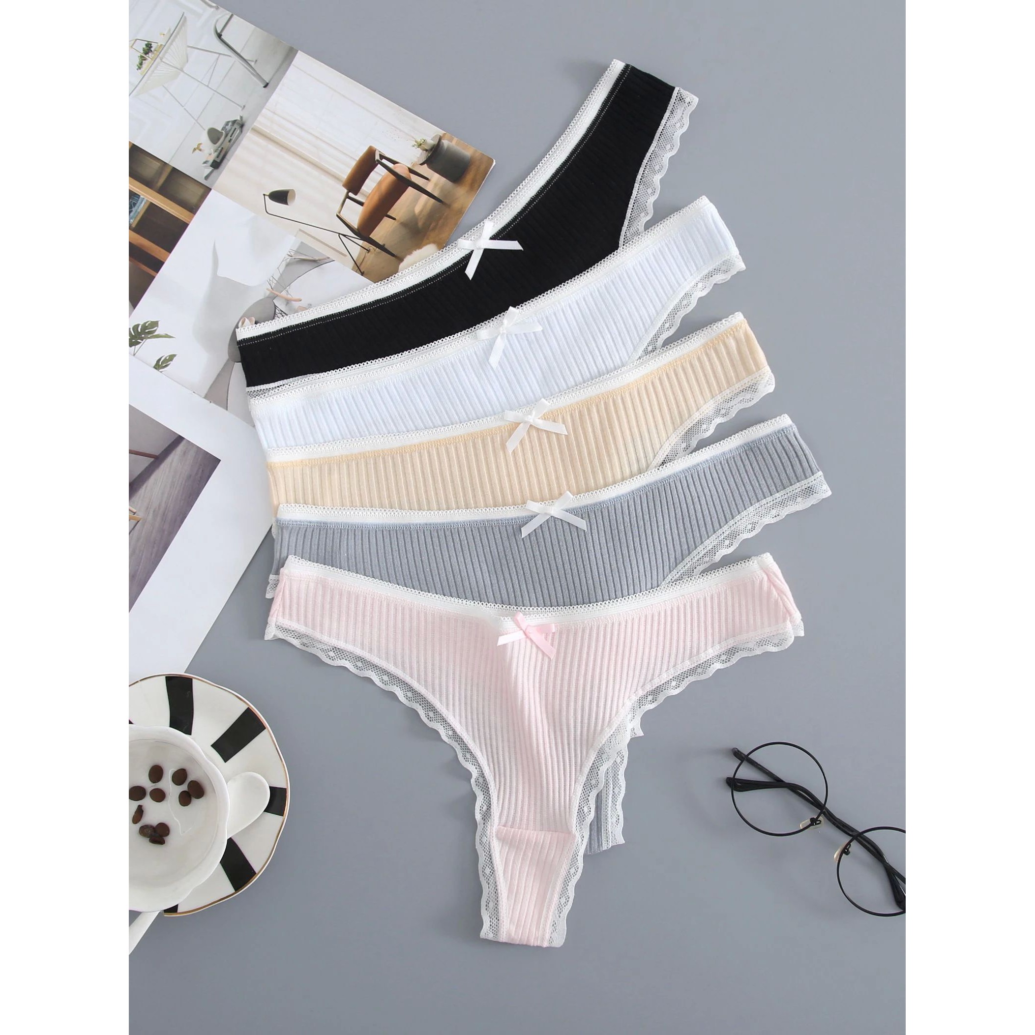 5PCS/Set Women Lace Seamless Cotton Panties Sexy Brazilian P