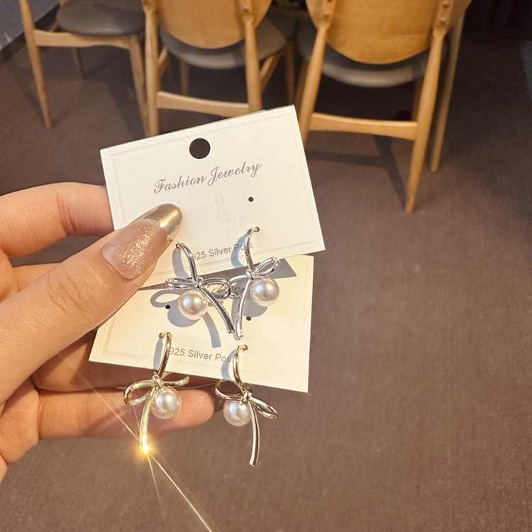 Explosive high-end feeling earrings sweet bow pearl earrings gentle temperament fashion light luxury all-match earrings women