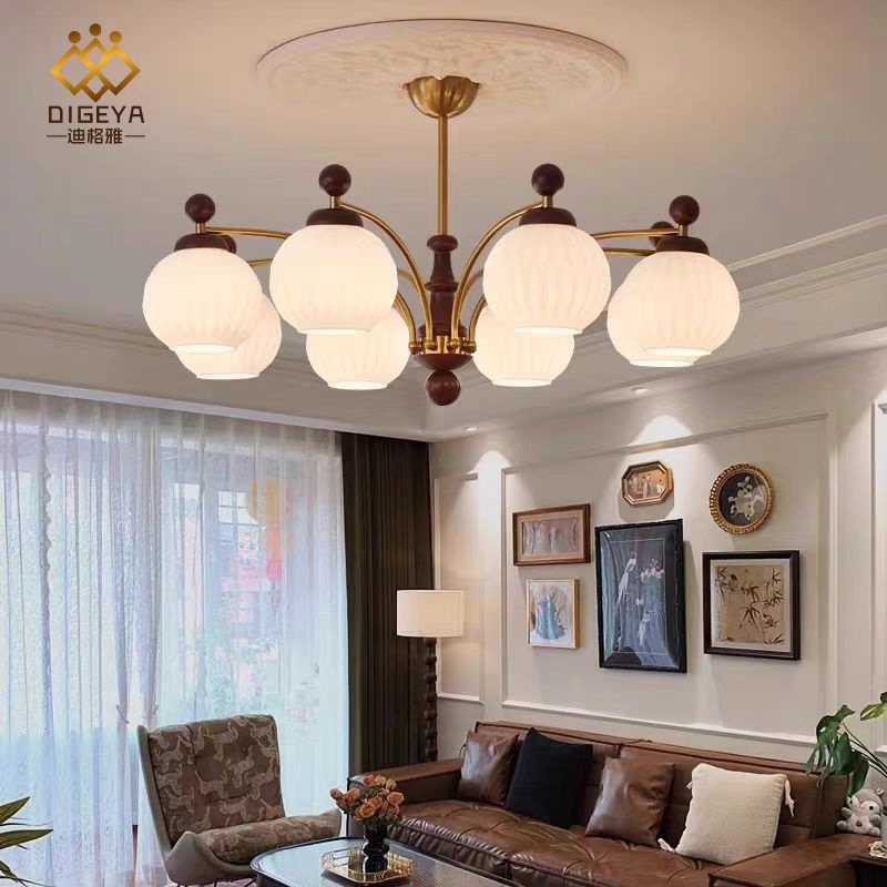 Digaya Vintage Living Room Chandelier French New Nanyang Style Solid Wood Restaurant Homestay High-grade Cream Persimmon Lamp