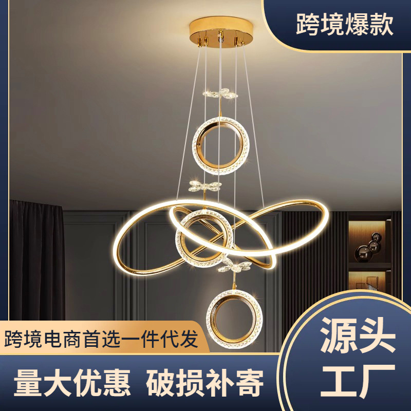 Living Room Chandelier Minimalist Creative Hall Main Light Italian Ring Creative Personality Light Luxury Restaurant Chandelier Zhongshan Lamps
