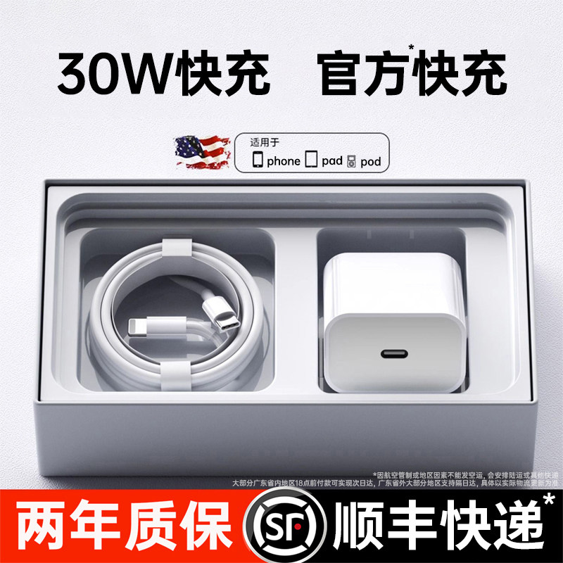 【3C Certified】Pd30 Fast Charger Compatible with Apple 15/16 Pro Max Data Cable iPhone 14 Mobile Phone 13 Plus Plug 12/11/Xr Original Set iPad Official Genuine Fast Charger