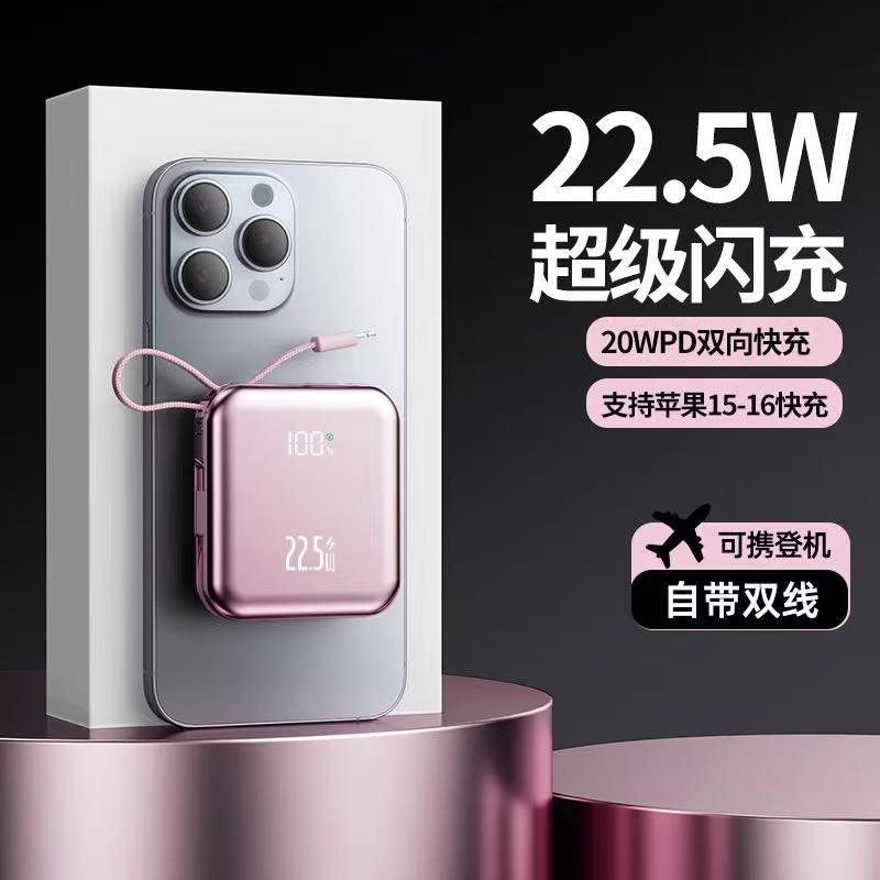 2025 New Candy Cube Fast Charging Power Bank Comes with Fast Charging Cable Smart Digital Display Mini Mobile Power Supply