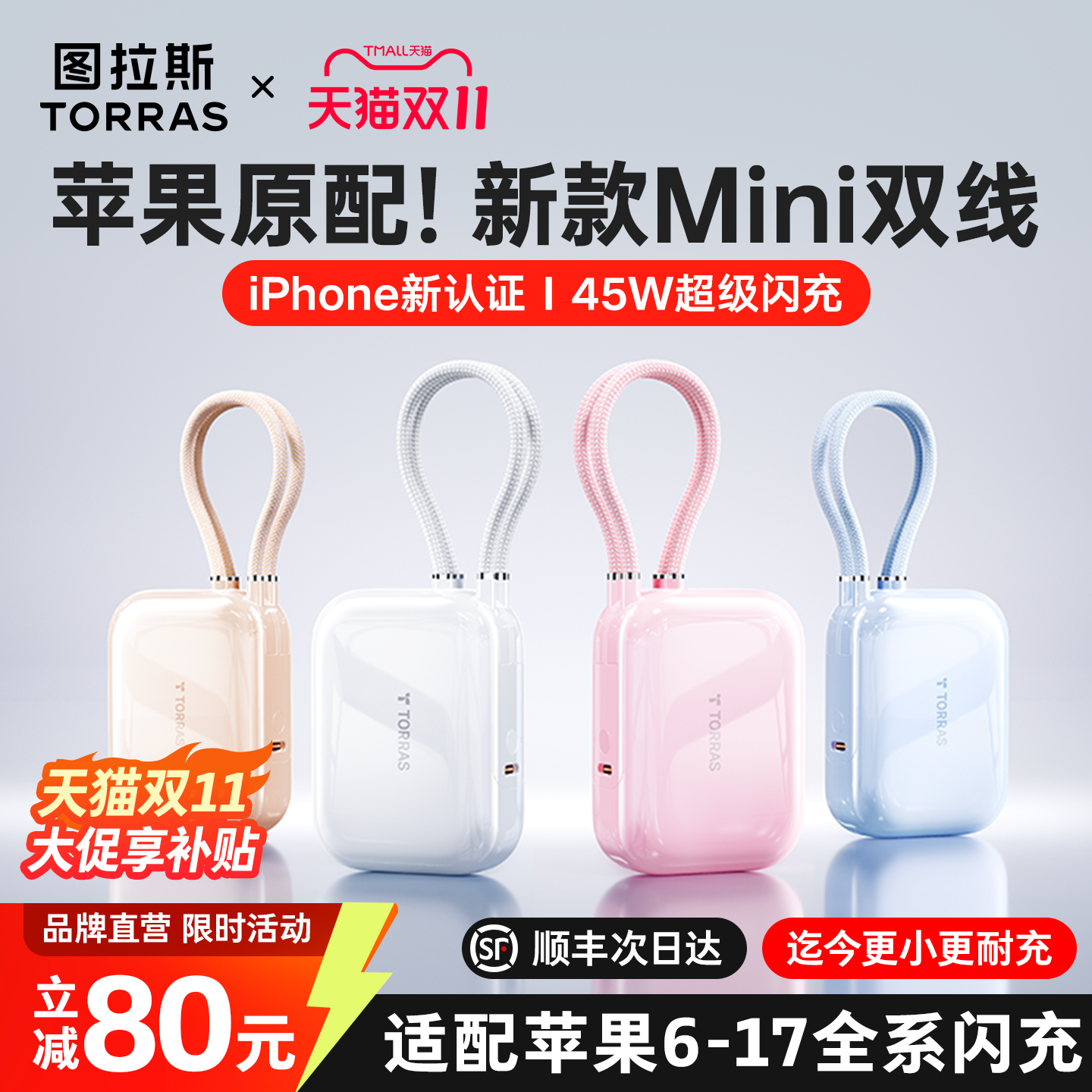 【Same as Papi Jiang'S】Turas 3-in-1 Portable Charger with 3C Certification, Suitable for Airplanes, 2025 New Model, Fast Charging Power Bank, Compatible with Apple 17, Comes with Cable and Plug