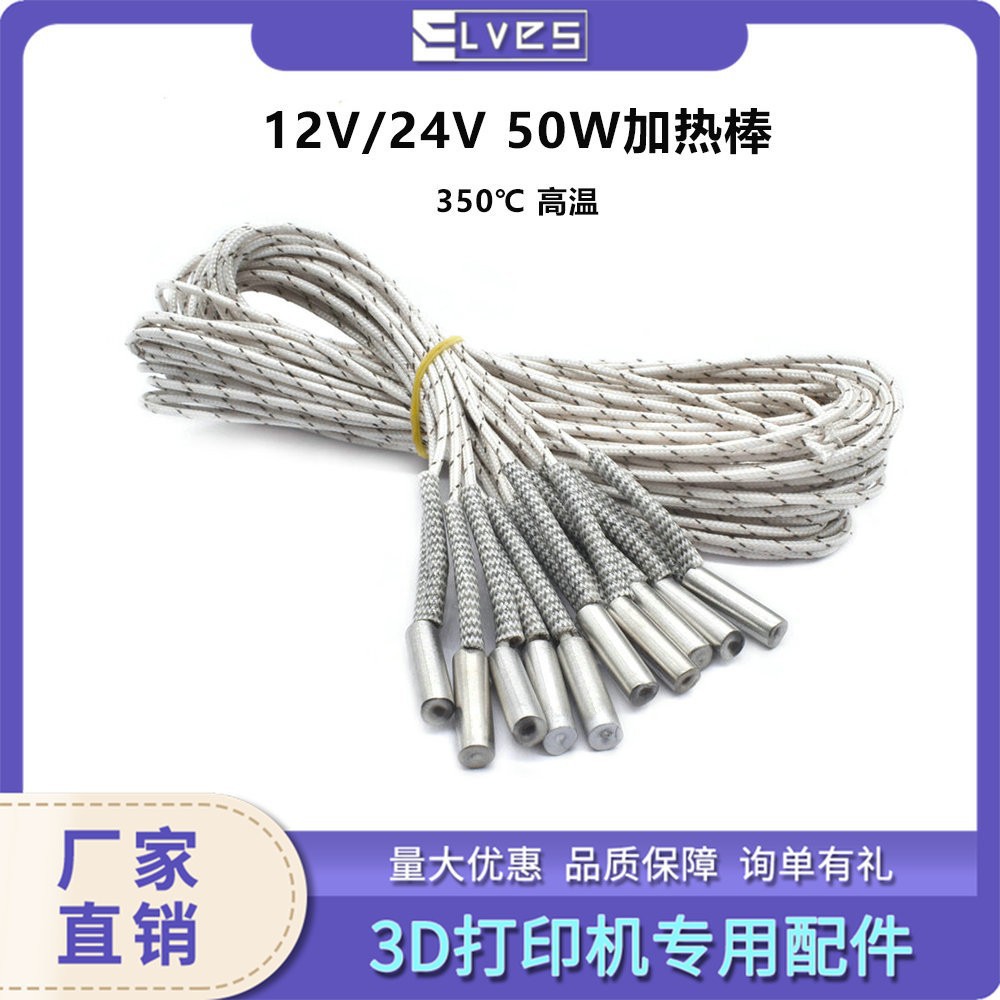 Elves 3D Printer Accessories 6*20mm 12V/24V 50W Heating Rod White Flower Wire High Temperature Resistant Heating Tube