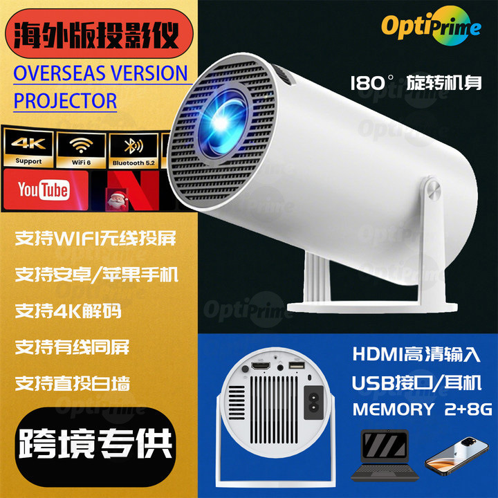 New Cross-Border 4K Ultra-High Definition Hy320Mini Home Export Ptz Portable Living Room Mobile Phone Smart Projector