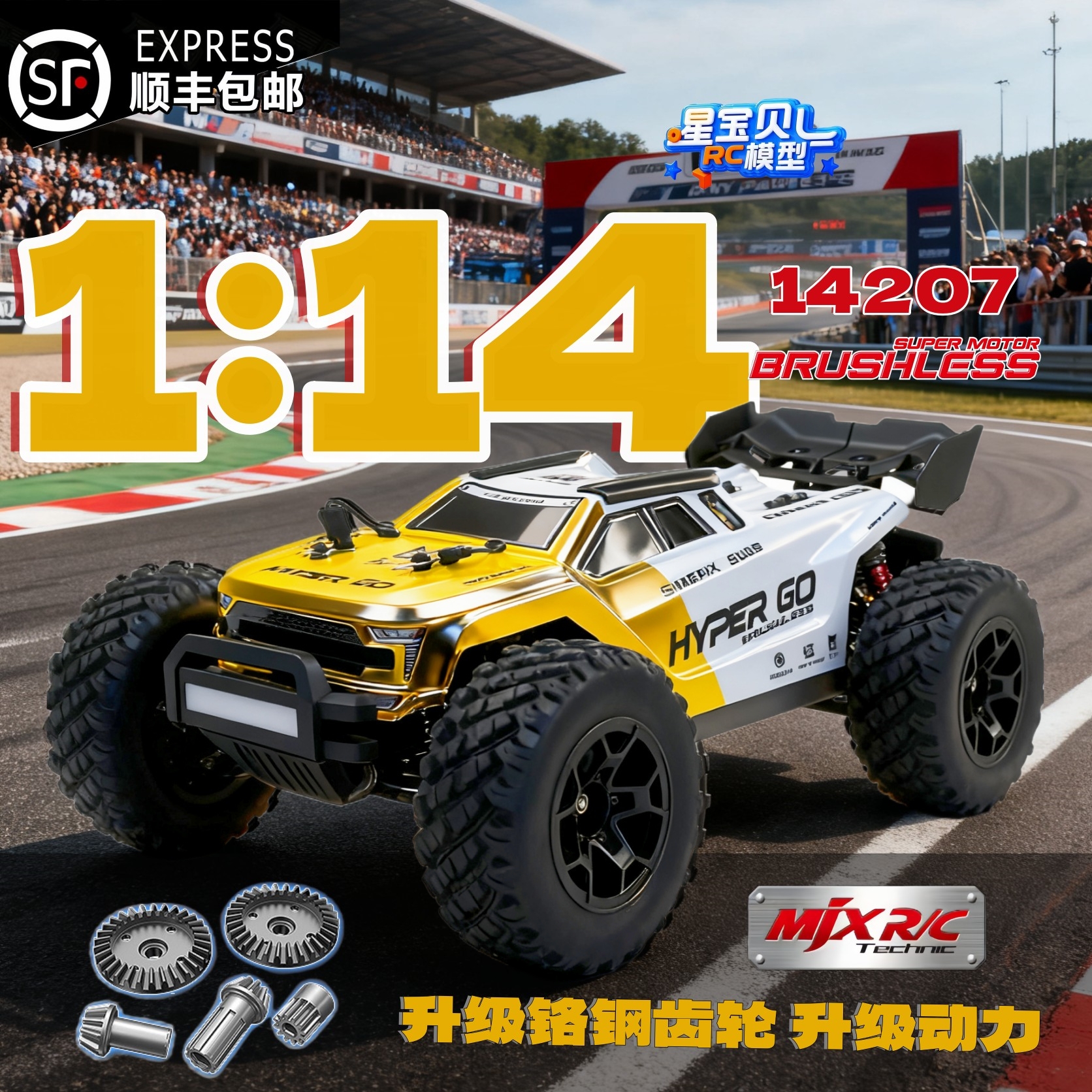 Meijiaxin 14207/14208 1:14 Rc Brushless Remote Control Car High-Speed Four-Wheel Drive Big-Wheel Desert Racing Off-Road Vehicle