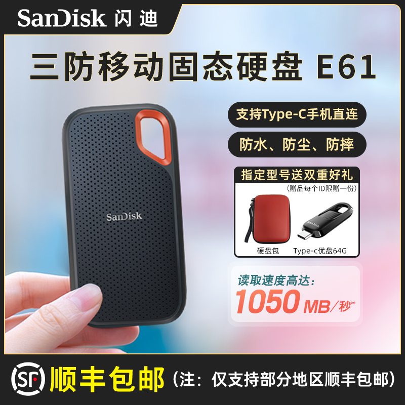Sandisk E61 Mobile Solid-State Drive 1t High-Speed Typec Dual Interface Mac Computer iPad External Expansion 500g