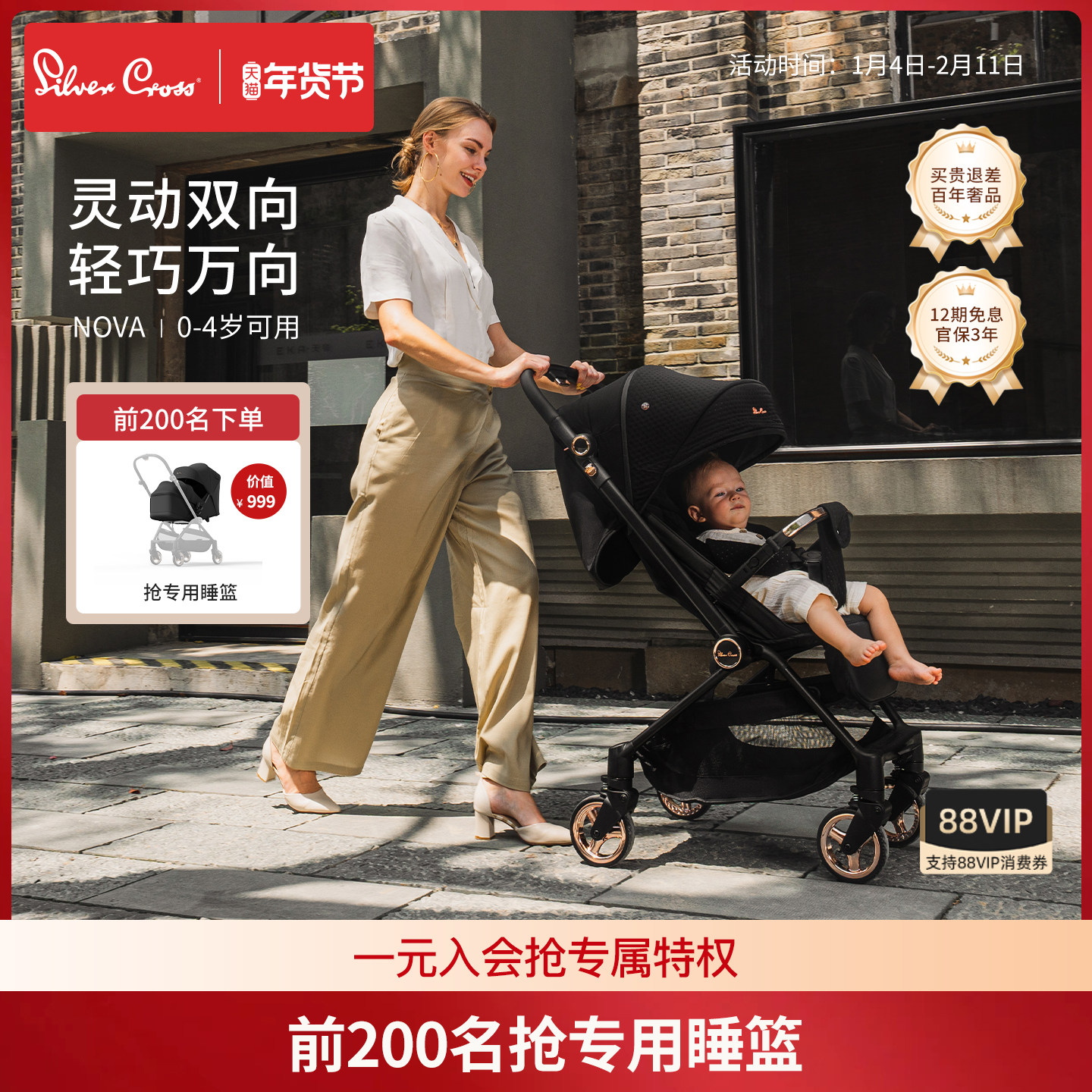 Silvercross Nova Lightweight Stroller Reversible Baby Foldable Stroller Sit-Stand Pocket Stroller