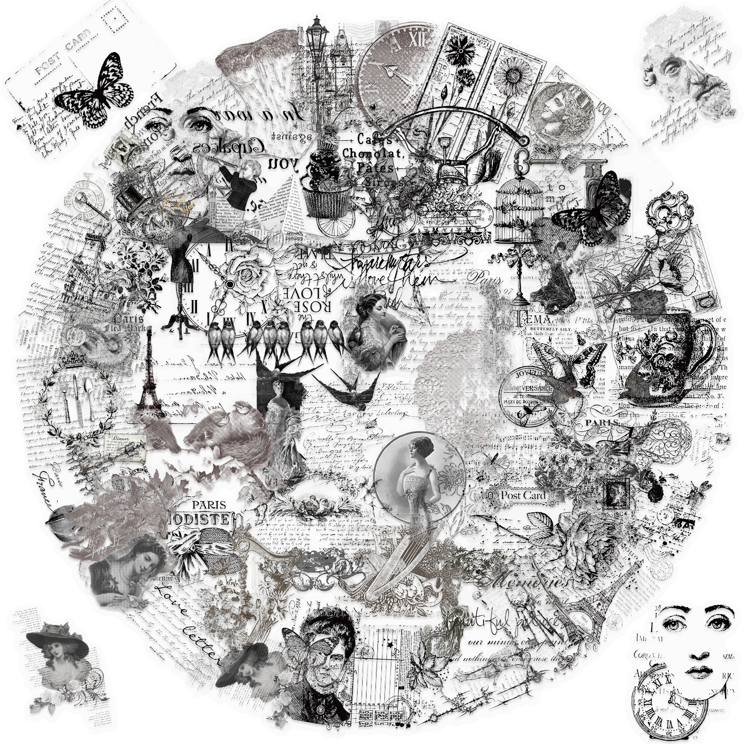 58 Retro Stamps Clip Art Waterproof Transparent PET Sticker Bag Hand Account Material Decoration Luggage Notebook