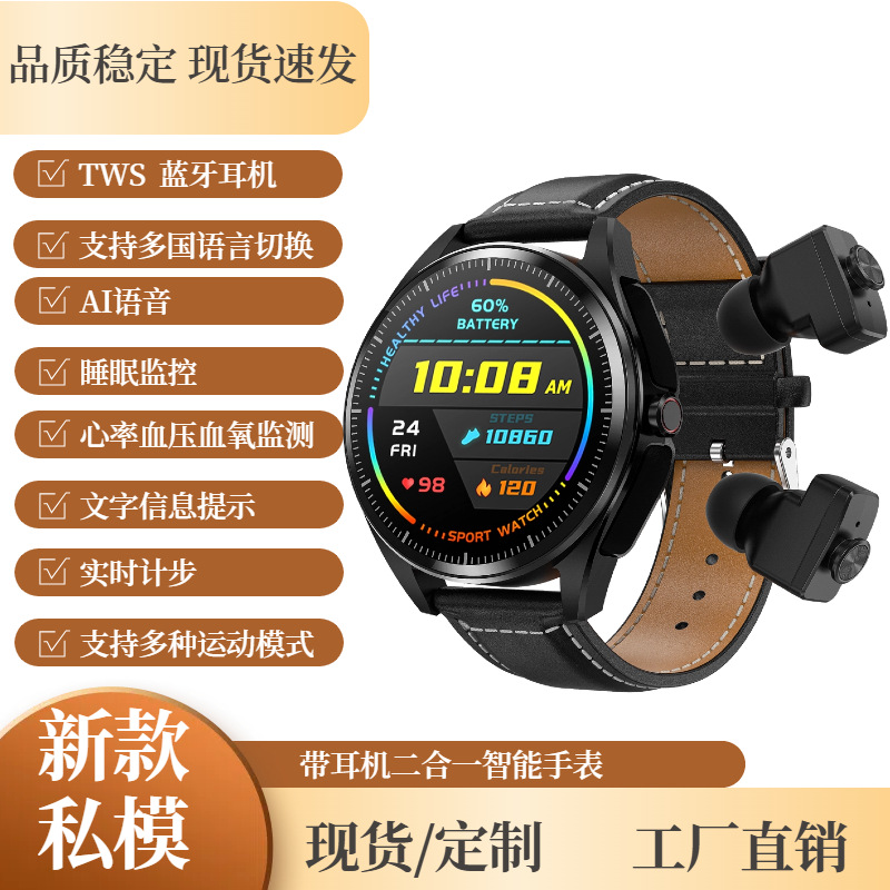 Cross-border new GT8 Buds smart watch TWS 2-in -1 HD Bluetooth headset call heart rate exercise watch