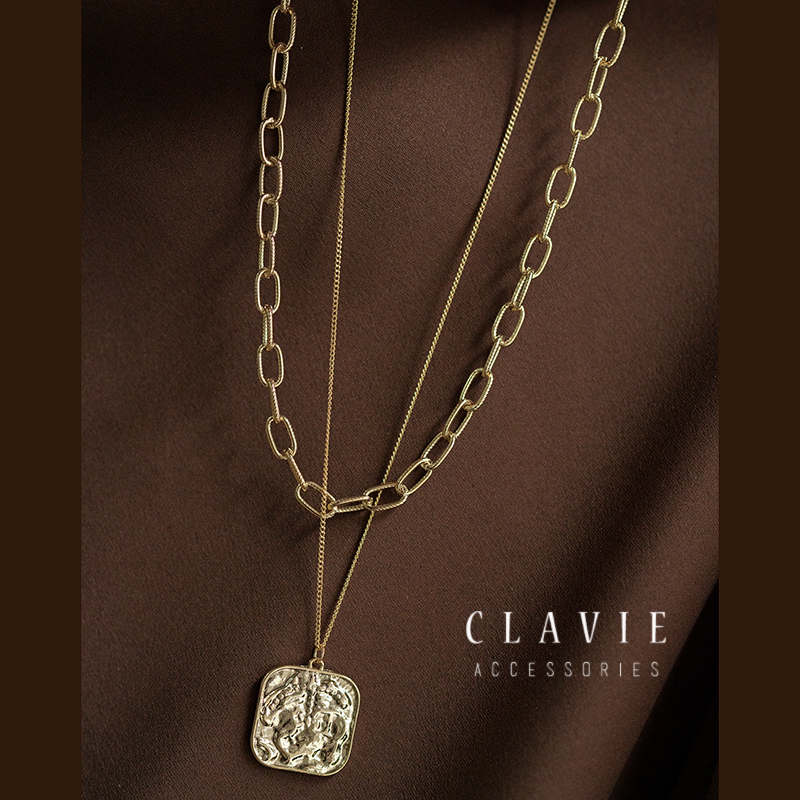 Necklace Layered with Multiple Layers, Double-Layered, Vintage European and American Style, Square Coin Pendant, Unique Minimalist Style, Clavicle Chain, Sweater Chain
