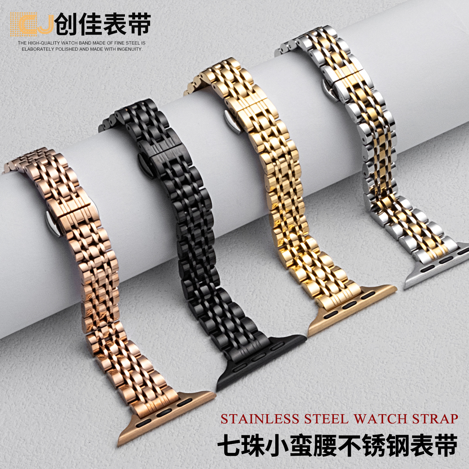 For Apple applewatch Small Waist Women's Seven Beads Solid Stainless Steel Iwatch Smart Watch Strap