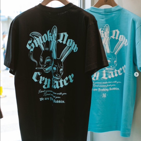 # Fr2 Getto Moon Peach Smoke Now Cry Later Unisex Crew Neck Loose Personality Short Sleeve T-Shirt Trendy