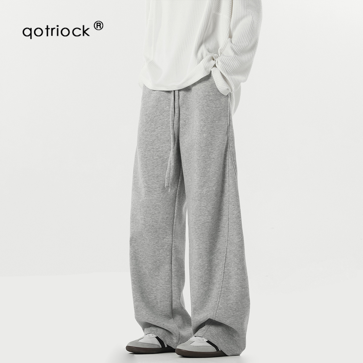 American High Street Style Casual Pants for Men, Autumn Trendy Brand Loose Thickened Sports Sweatpants, Heavy Drape Straight-Leg Pants