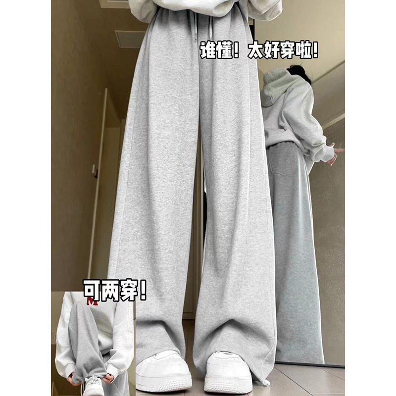 Grey Sports Pants Women's Spring Fall and winter Fleece-lined New arrival Loose Wide Leg Straight-leg Gods Pants high waist Slim Looking Casual Guard Pants