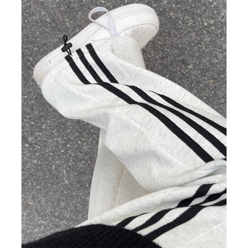 American-Style Women's Sweatpants for Spring, Autumn, and Winter 2025, New Loose Straight-Leg Drapey Casual Wide-Leg Fleece-Lined Three-Stripe Sweatpants