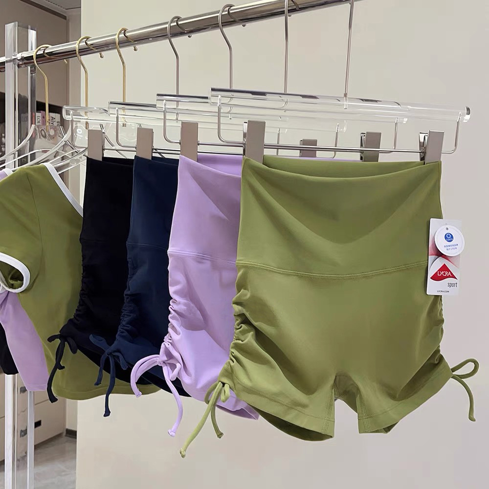 Cross-border High Waist Tight Yoga Shorts Belly-lifting Hip Side Drawstring Fitness Triple Pants Running Sports Hot Pants