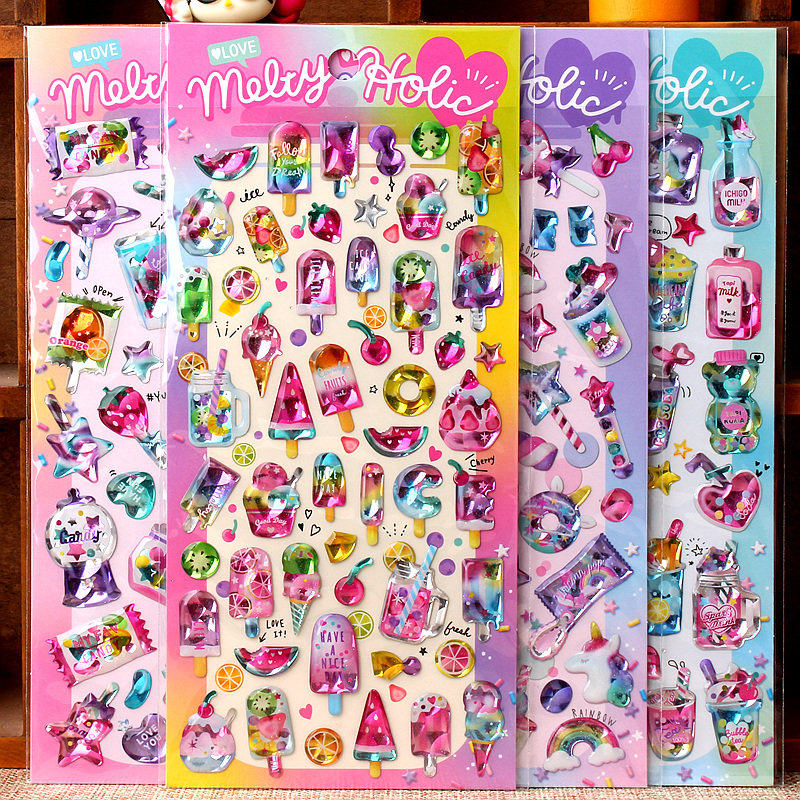 3D Cartoon Decorative Planner Stickers, Children's Reward Stickers, Ice Cream Candy Stickers, Crystal Small Stickers