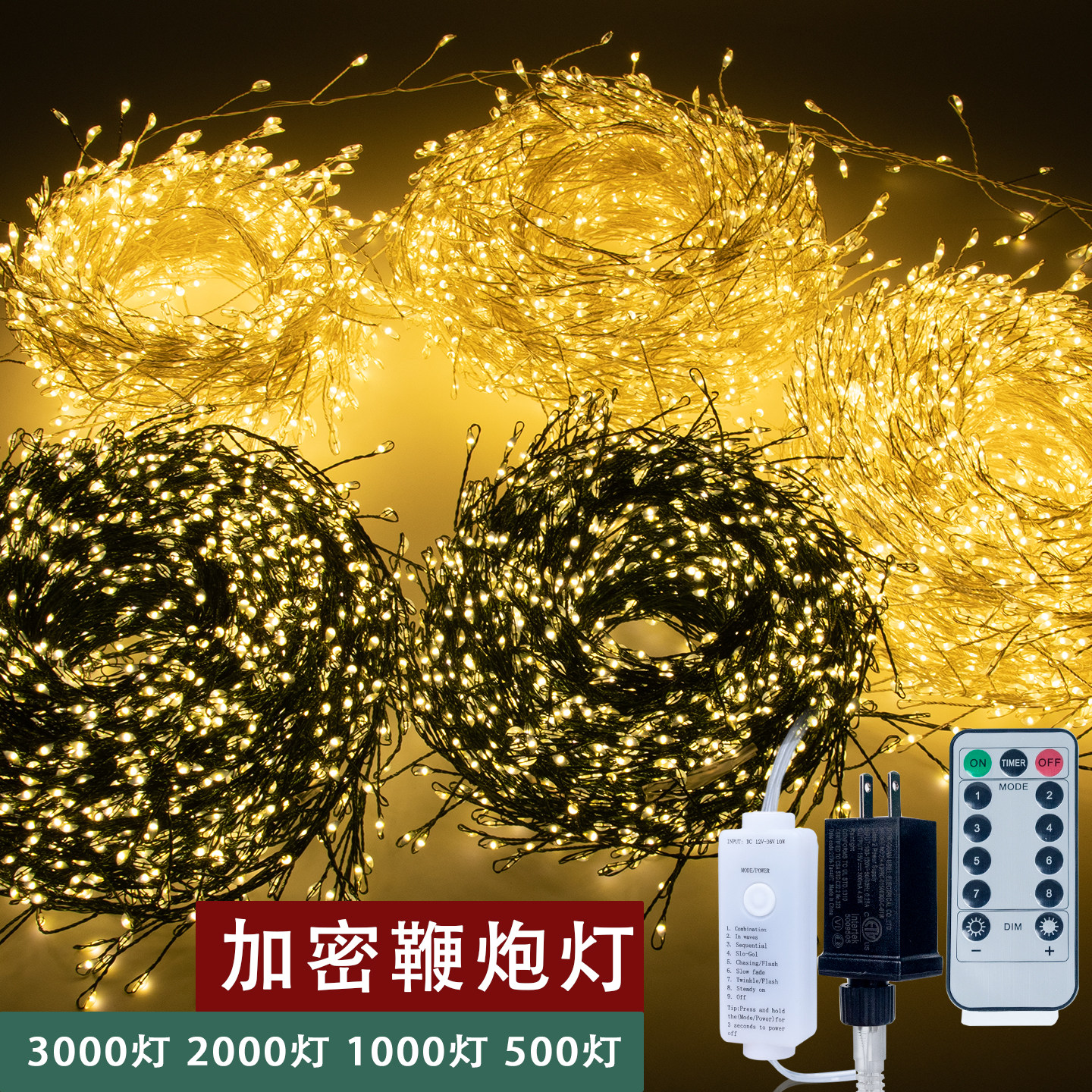 Remote-Controlled Korean Christmas Tree String Lights Firecracker Lights Christmas Decoration Hidden Green Wire Copper Wire Lights Encrypted 3000 Lights