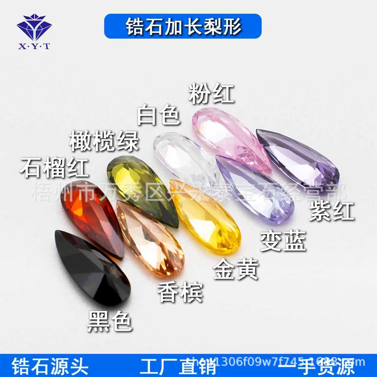 Long drop-shaped zircon color bare stone lengthened pear-shaped gem bare stone artificial synthetic cubic zirconia