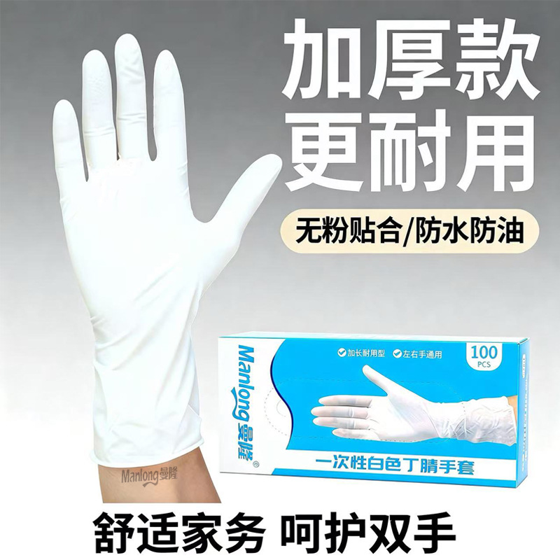 Yinglin Disposable Nitrile Gloves, White, 12inch Extended Length Nitrile Rubber Latex Gloves, Special for Kitchen and Household Use