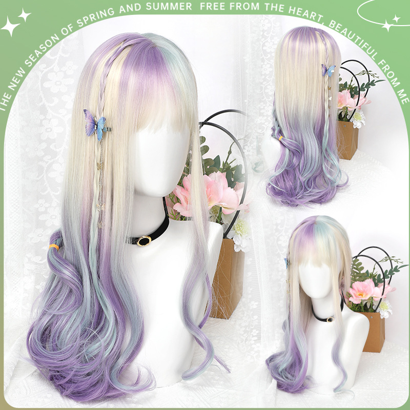 Lolita Synthetic Wig Women's Long Roll Daily Hairstyle Natural Cyber Celebrant lo Gradient JK Girls' Full Head Cover